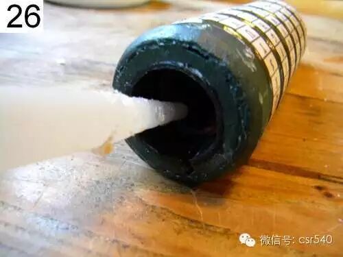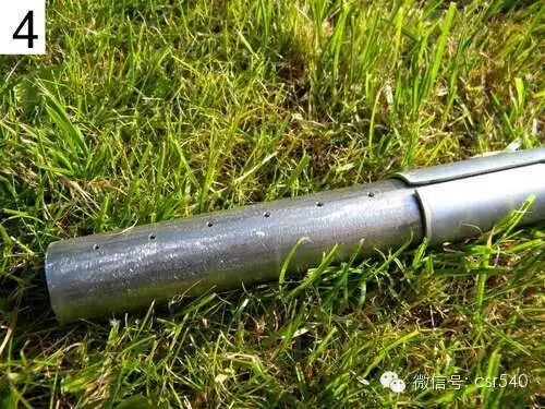 ● 同样,把4号管也锯成一个一个的环,宽度略大使之能够遮盖住较小的环和之间的缝隙,这样,钉子也被遮盖住了。