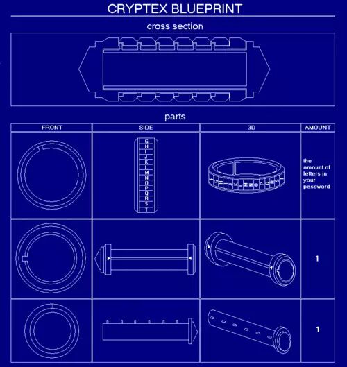 ● 这张蓝色的纸便是密码筒的设计草图。当你准备开动的时候,先好好理解一下吧——你应该得明确地知道你正在做什么。如果看不懂,那最好先通读一下全部的步骤。无论如何,我推荐你先纵览一遍。