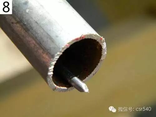● 这是最小的那两根管子。2号管上已经有一条切口了,之后钉子就卡在那切口里。