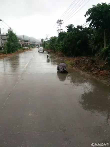 台风来袭,风雨中两位法师不为所动,坚持跪拜前行