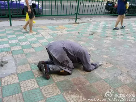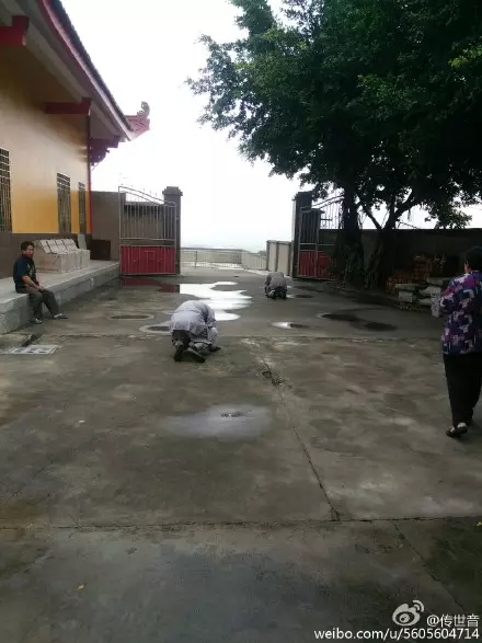 三步一拜到华侨博物馆,额头已有磕头痕迹