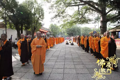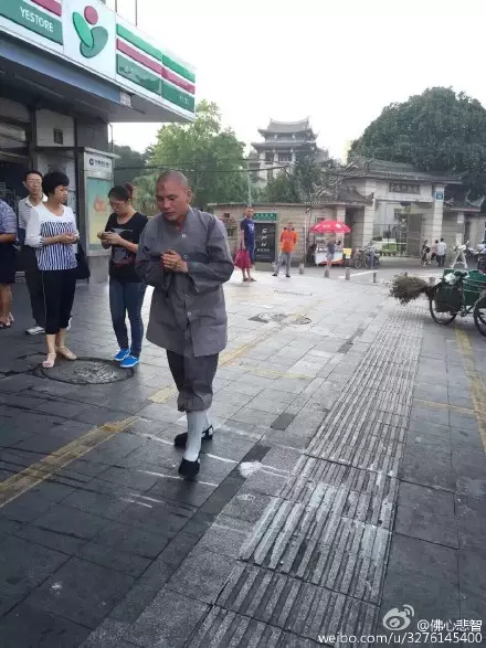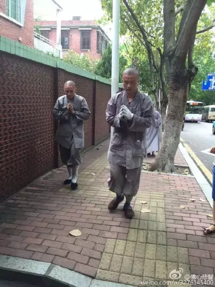 南普陀寺庙提醒:两位法师本次拜山沿途只接受水和食物供养,不接受金钱供养。践行菩萨道!
