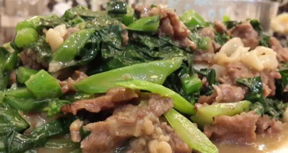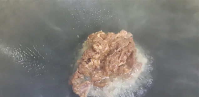 10.原锅下油,下牛肉,翻炒至牛肉变色