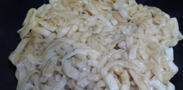 7.翻炒几下,下酱油水,使酱油水和粿条充分融合在一起