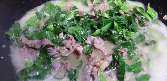 1.牛肉加入沙茶酱,1小勺生粉,1小勺油,充分搅拌均匀