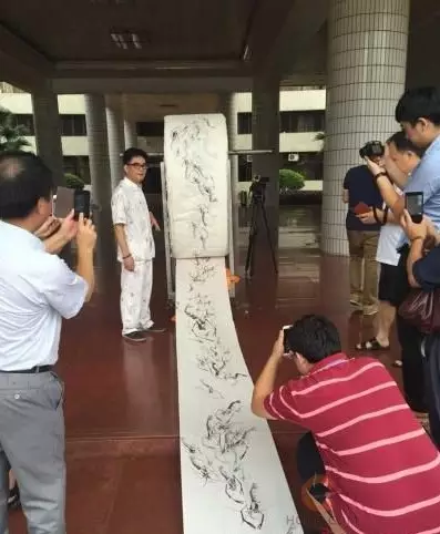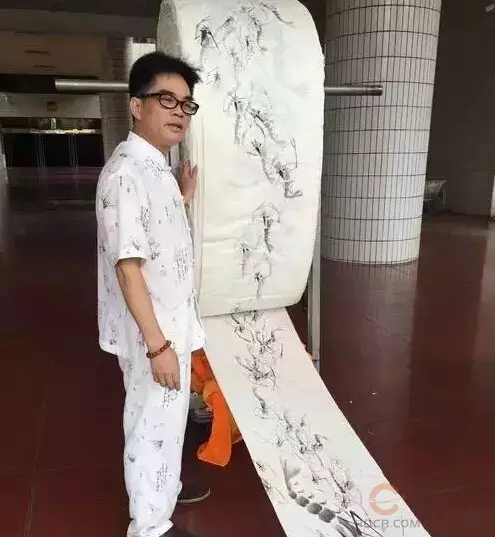6月20日上午,普宁籍画家江建秀所创作的4000米国画长卷《三万虾兵西游记》,在韶关市政府广场首次展示。据了解,这幅国画长卷长4000米,宽0.5米(18000平方尺),重203斤,画有30000多只虾。这是江建秀从2011年5月开始构思筹划创作,至2015年5月底用了4年时间完成的作品,期间断断续续共计耗时4380多个小时。据介绍,画家江建秀将为《三万虾兵西游记》申报吉尼斯世界纪录。