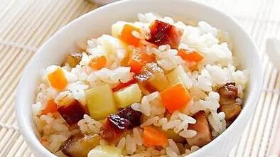 大米1.5杯、腊肉200克、胡萝卜1根、土豆200克、植物油适量