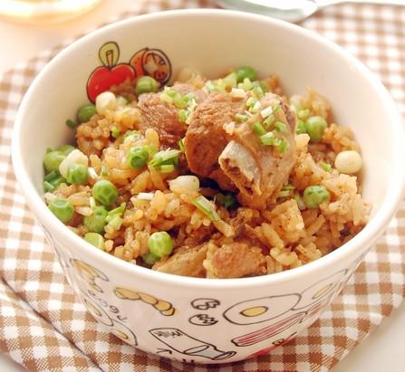 材料:新鲜排骨,速冻的青豆和玉米,普通米和糯米各半