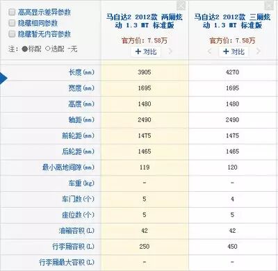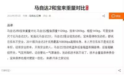 2、马自达2,我们翻遍了汽车网站的资料,重量这一栏居然都是空白,在其他车友他对比帖子里面,找到他的重量是1.120吨!!