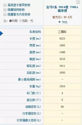 1、 宝马7系,我们找到网上公布的最低配的7系配置如下:
