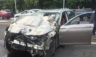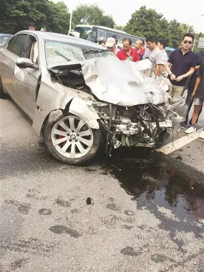 注意看看宝马前部的防撞钢梁,虽然已经变形,但是对分散撞击力量起了很大的作用。