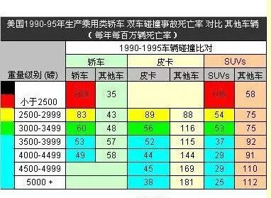 能看懂这张表吗?这是双车碰撞死亡率对比表。1磅(lb)=0.4535924公斤(kg)