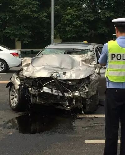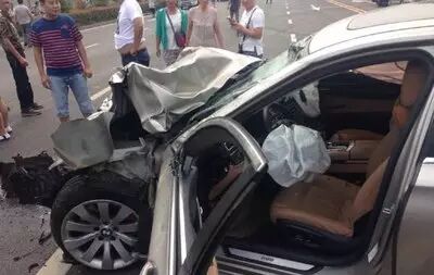 车祸发生原因是宝马7系撞红灯撞击正在左转弯的马自达2左后侧,导致马自达2车身解体,两位车友当场死亡。宝马7系气囊全部爆开,人员应该没有大碍。