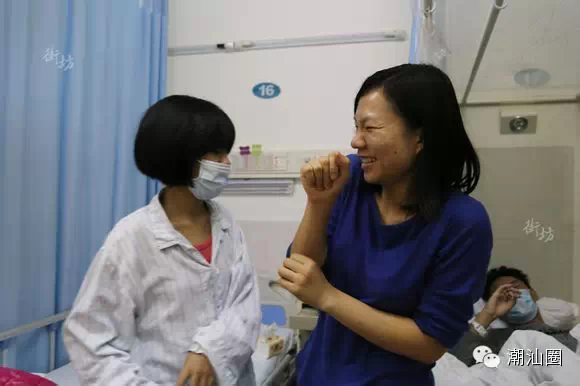 母亲在广州照顾妹妹,由于她听力不好,只能凑到春丽跟前听她说话。