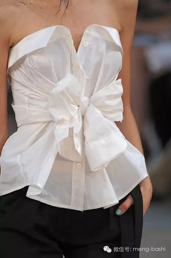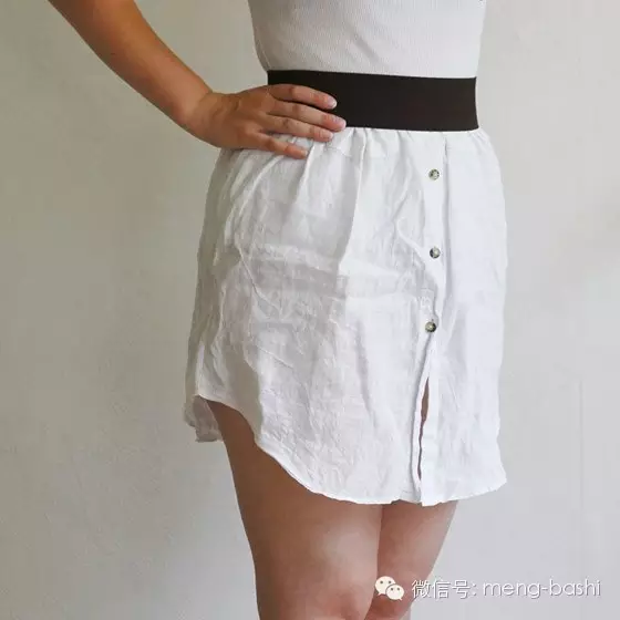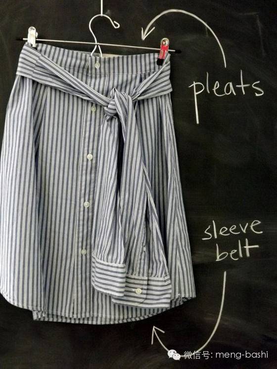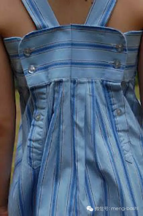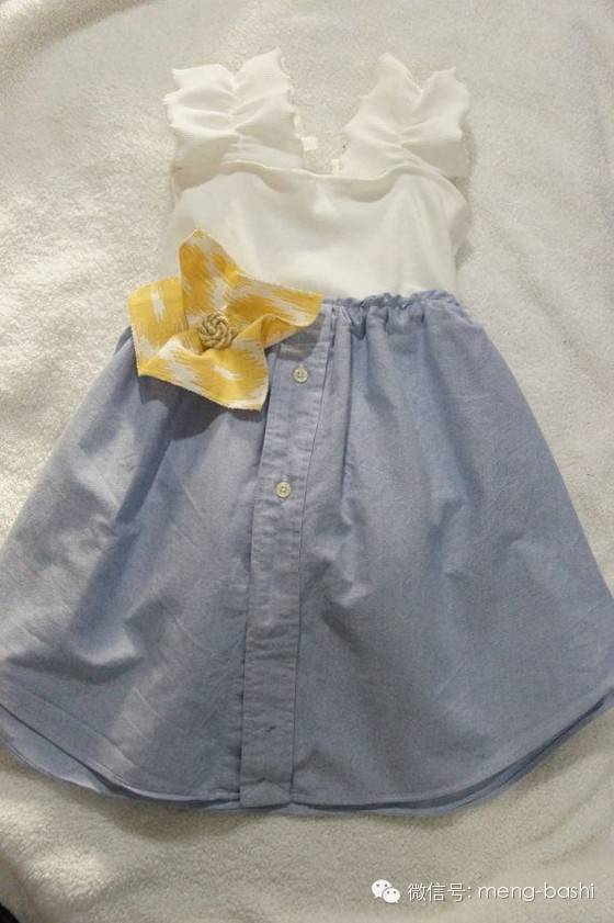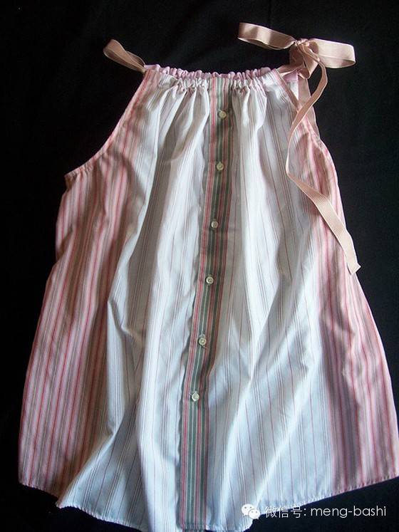 袖子展开做宽吊带,领子做那一节抹胸,完全没浪费。爸爸你的衬衫为我而生。