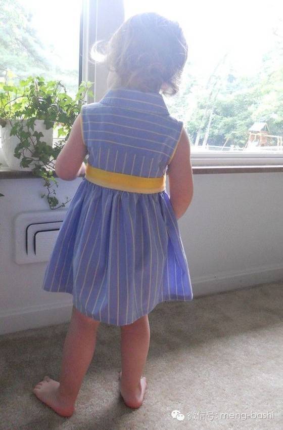 再一次掩饰如何利用爸爸的衬衫为女儿做裙子,只需要女儿的一件衣服做为参照,剪下缝制即可,很简单。