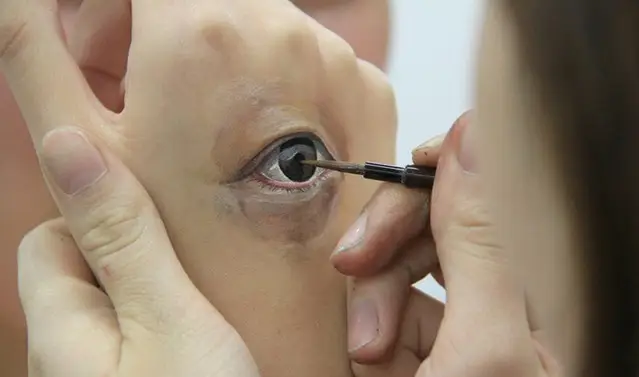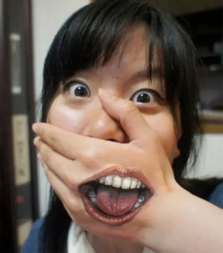 一位艺术创作者以超高的彩绘技巧,将嘴巴、眼睛、鞋带、拉链等元素在人体上绘画出吓人的人体彩绘,观众们欣赏的同时要有心理准备,很吓人的。