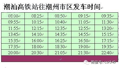 ①韩师学子站→②南桥市场站→③公交公司站(潮州宾馆对面)→④池湖中心站→潮汕高铁站。(专线车每天35班,每隔25分钟一班)