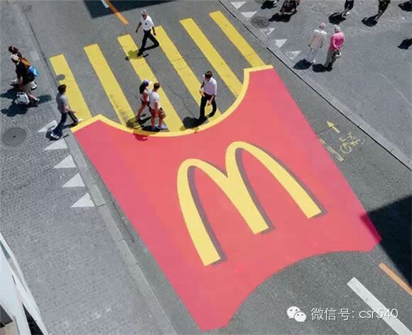 McDonald的薯条的外型恰巧变成街上一条条的斑马线。