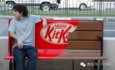 看起来可口的KitKat巧克力其实是路旁的长椅。