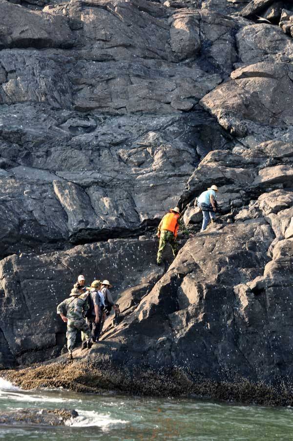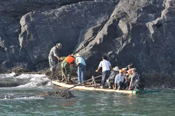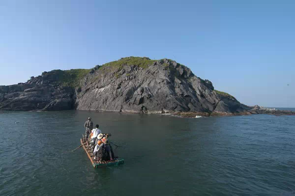 乌屿附近列岛海域礁岩棋布,渔船无法靠近,只能通过小木排上岛。(一般是驴友游。自助游)