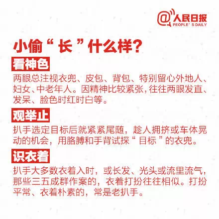 春节快到了,小偷的活跃季也来了。由于人们穿得厚,敏感度下降,在公交、地铁、火车站……小偷频频得手。你知道哪个口袋容易被偷吗?你知道扒手之间暗语“天窗”“地道”代表啥吗?民警总结的小偷惯用伎俩和反扒提示,一册在手,防扒无忧!