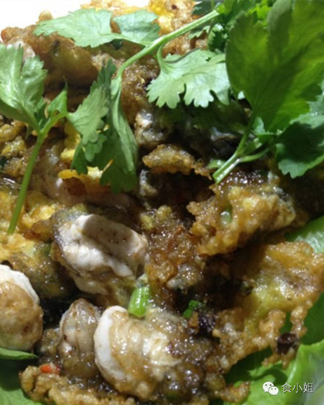 用新鲜的小颗蚝,掺入地瓜粉,之后打进鸡蛋,煎至金黄色就可上锅,再放上香菜点缀,未动筷口水就先来报到。夹上一块蘸点胡椒粉加鱼露,外层酥香,内馅滑润。