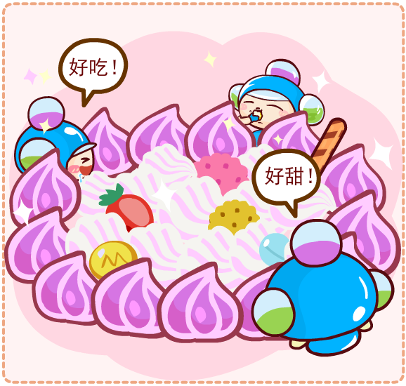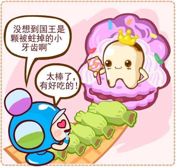 6、原来在奶泡泡吃甜食时,蛀虫们趁机把它的蛀牙运到国王那成了糖果城的新公民。