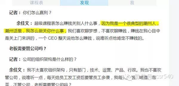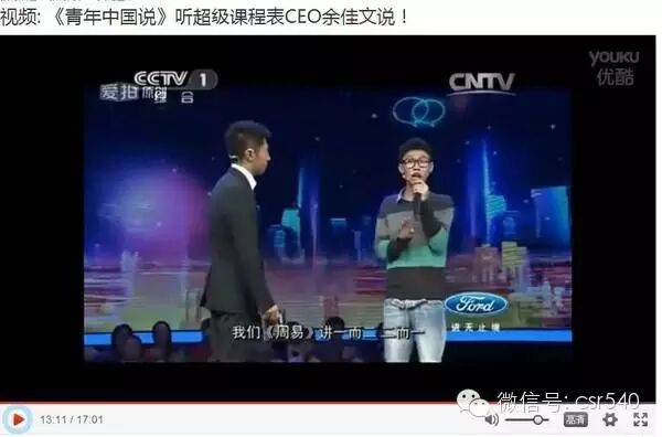 至于这两天上面传播的视频我也看到了,电视里的余佳文和我们当初见到的他像换了个人,打扮新潮了不少,包括视频中闪现的个性和公司场景,包括场下观众听到超课时候的激动情绪,都让我挺意外的,如果这不是一场PR的话,那祝贺这个团队进步了