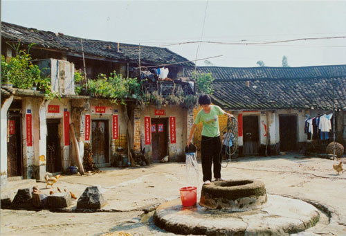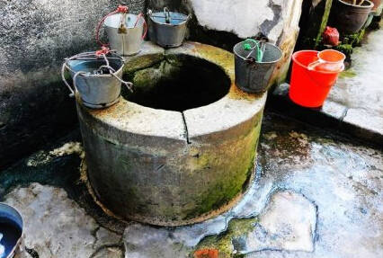 有的乡村的井很多,有院外的,有院内的,小时候叫天井。挖井要请地理先生测定井眼,有的挖丈多、两三丈深才见泉水涌出,再加进几担粗沙粒铺垫作过滤。水质好的才作为食水,差的作为用水。井水很凉,夏天,人们还将西瓜放在篮子里坠进井里浸泡,如进冰箱一样。