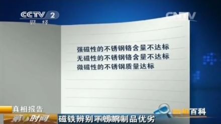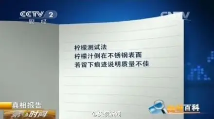 央视记者实验发现,在全新的不锈钢杯中泡茶,72小时后,不锈钢杯的内壁有明显被腐蚀的痕迹。越是便宜的不锈钢越易被腐蚀,释放出铬,对身体造成危害。所以不锈钢杯不能泡茶,油盐酱醋也不要用它存放。测试:柠檬汁倒在不锈钢表面若留下痕迹说明质量不佳!