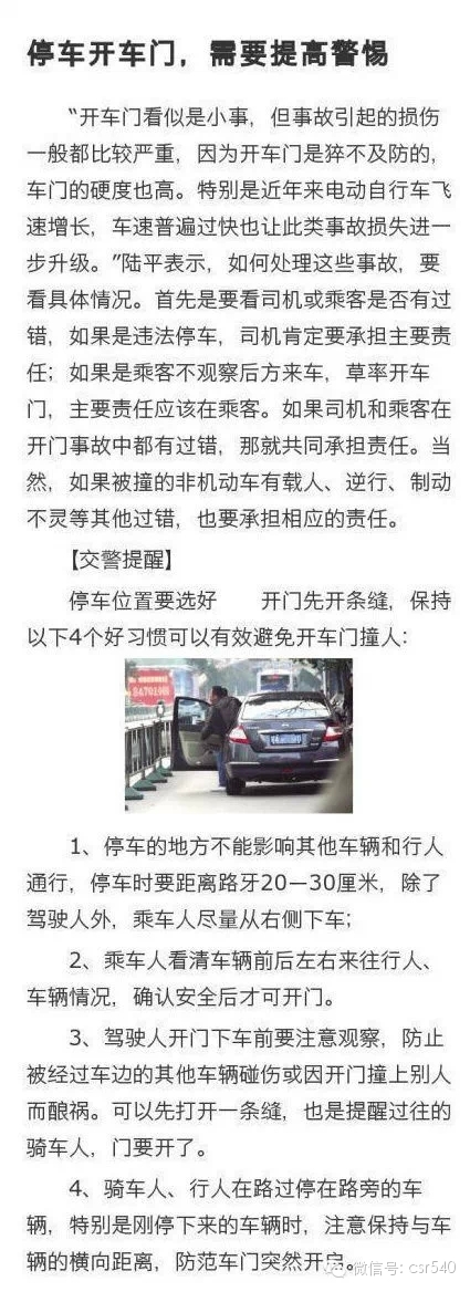提醒:停车后应"二次开门",即先将车门开拳头大小缝,经观察确认安全后再开门。转,别大意!
