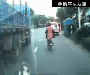 幸亏戴了头盔,真命大,没被左侧来的车压到。