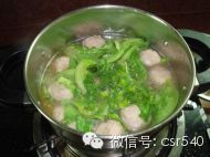 2、把水烧开,放点油,再放入牛肉丸,最后下生菜。