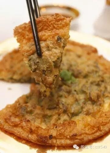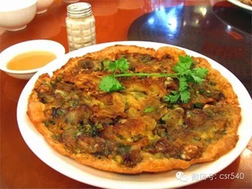 3、鸡蛋打发均匀,下一点鱼露,然后加到蚝烙面上,待蛋液凝固即可。