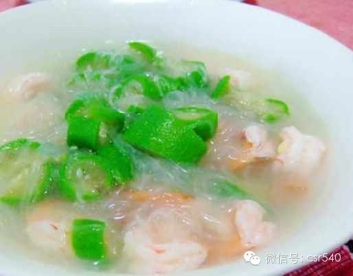 材料:丝瓜一根,干虾仁少许,猪油适量,味精适量,胡椒粉适量。