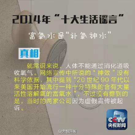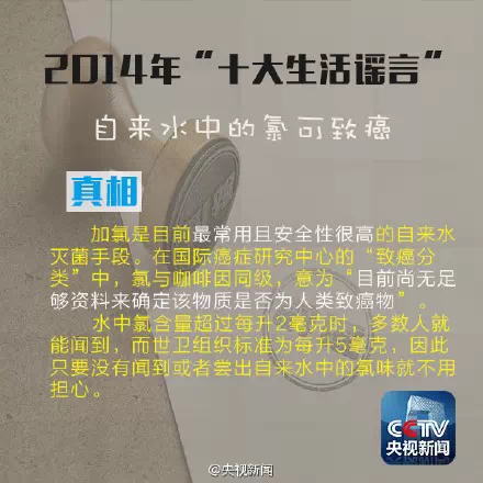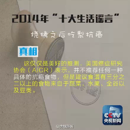 自来水中的氯可致癌?烧烤之后吃梨可抗癌?对于这些生活中看似正确的“冷知识”,有时还真是弄不明白。可真相只有一个,快来看看最近发布的2014年“十大生活谣言”榜,算算你又上过几次当?