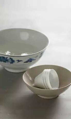 茶洗形若大碗,深浅色样各别。烹茶之家,必备三个,一正二副;正洗用以贮浸茶杯,副洗一以贮浸茶壶,一以储存茶渣及杯盘弃水。